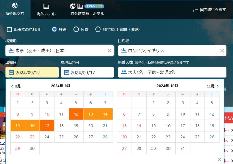 エアトリで航空券を注文する場合、往復か片道、2都市以上訪問、出張といった項目を選択します。出張を選ぶと座席シートが広い航空会社が選ばれます。次には出発地と目的地、出発日と現地出発日、搭乗人数を入力します。なお、2都市以上選ぶと区間ごとの都市と日程が選択できます。