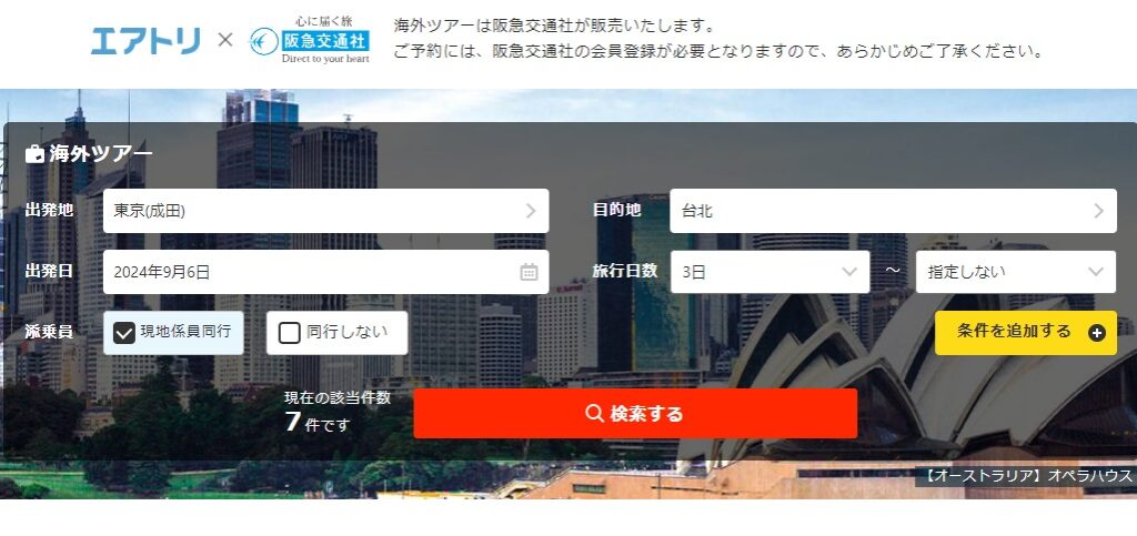 なお海外ツアーについては阪急交通社と提携しているため、阪急交通社の会員登録が別途必要になるので注意しましょう。