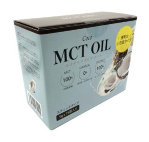 珍しい箱入りのMCTオイルです。中は1回分ずつ小包装になっており持ち運びにも便利。平日のランチの時間にサッと混ぜたり、テイクアウトしたコーヒーに入れたり、気軽にMCTオイルを取ることができます。テクスチャは少し固めで若干オイリーですが、無味なのであたたかい料理に溶かしてしまえば気になることはありません。